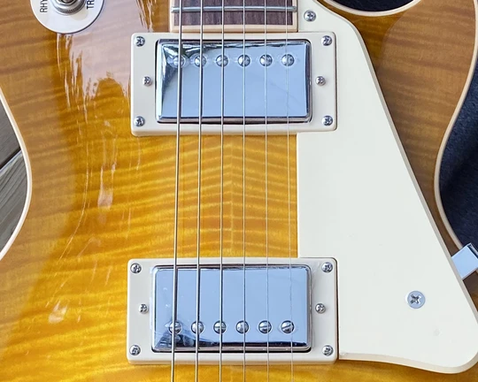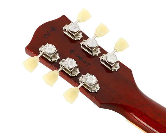En la parte eléctrica, la LPV apuesta por un set Seymour Duncan ’59, capaz de entregar desde limpios dulces hasta un crunch articulado, acompañado por un sistema tradicional de 2 Vol / 2 Tone y selector de 3 posiciones. El puente Gotoh GE103B & GE101Z-T asegura estabilidad, sustain y un feel sólido bajo la mano.